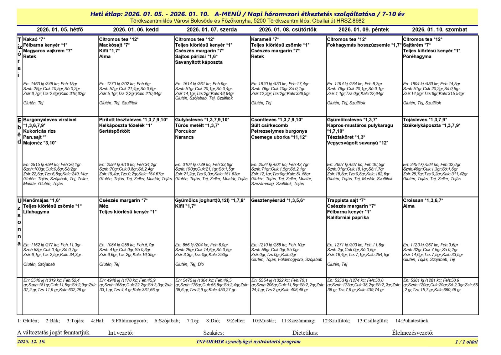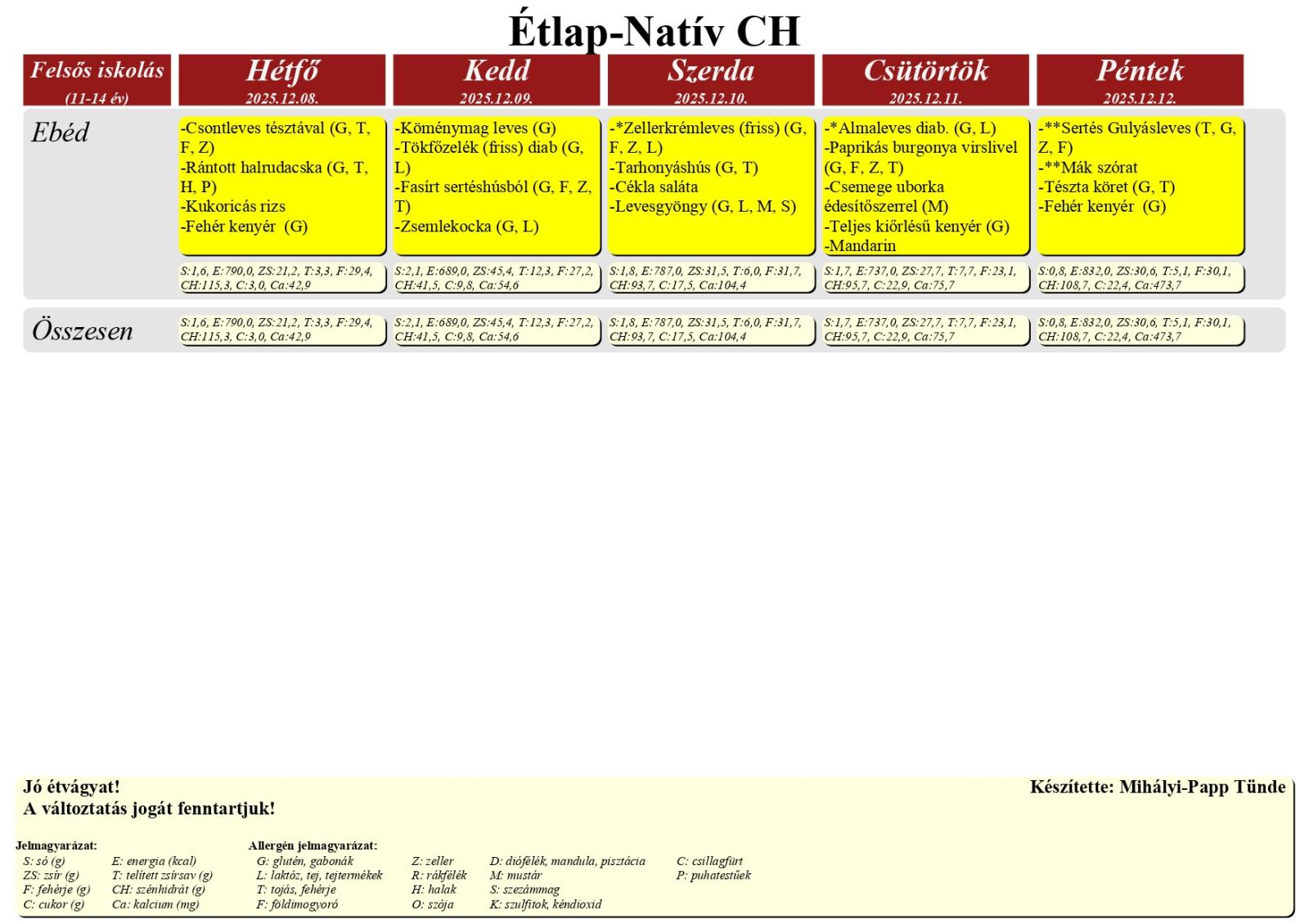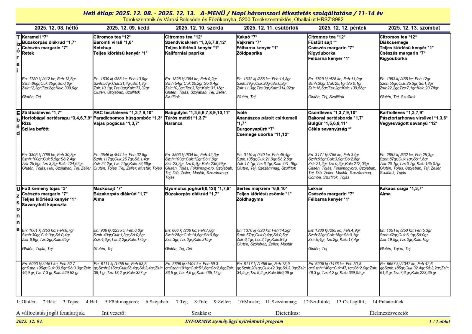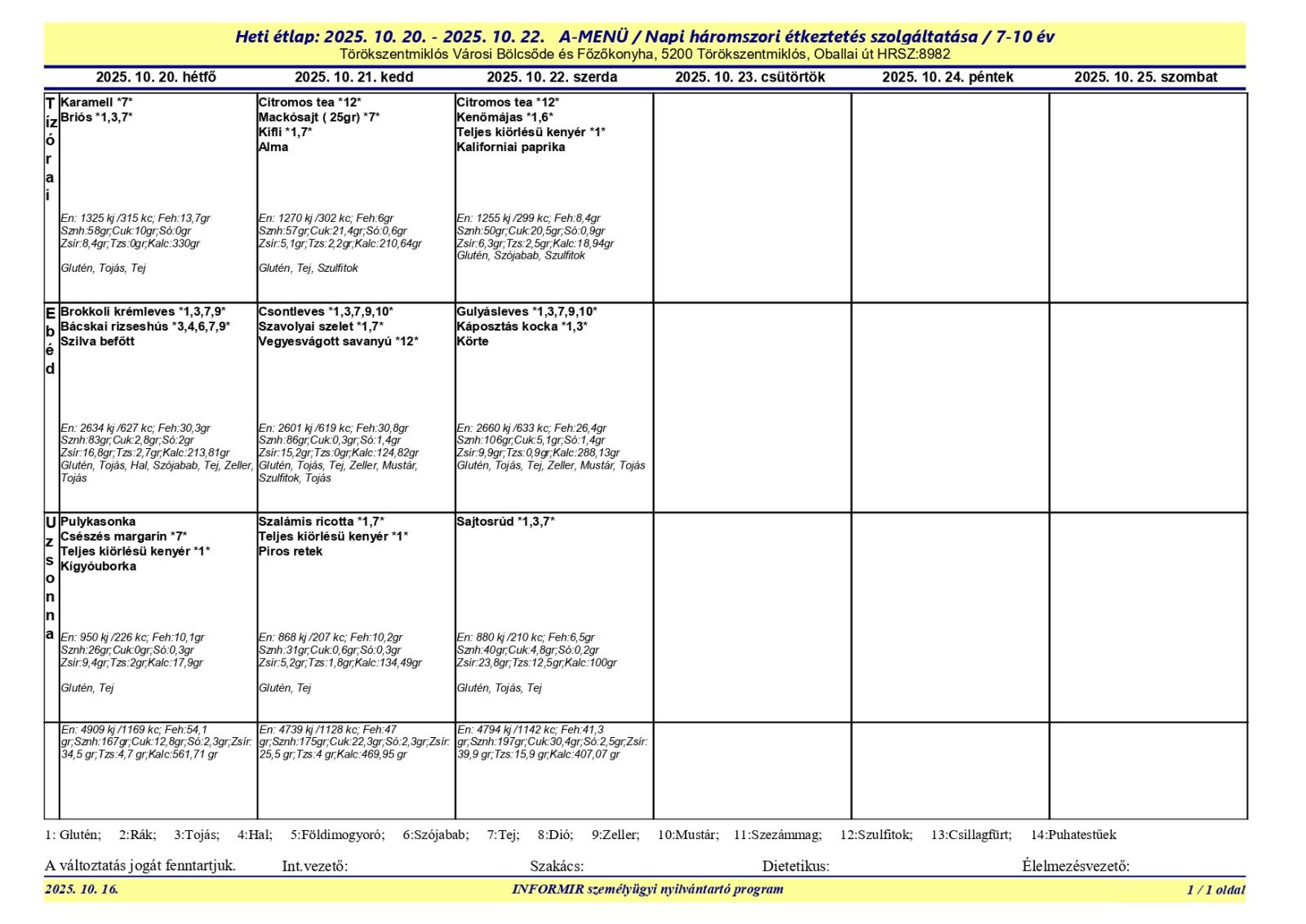 Ezúton tájékoztatjuk Önöket a 2025/2026. tanév iskolai étkeztetés rendjéről.