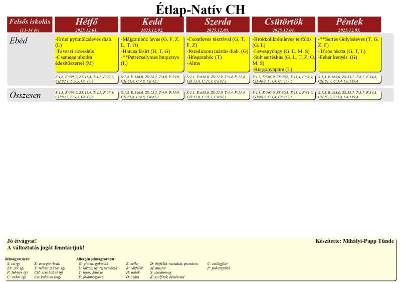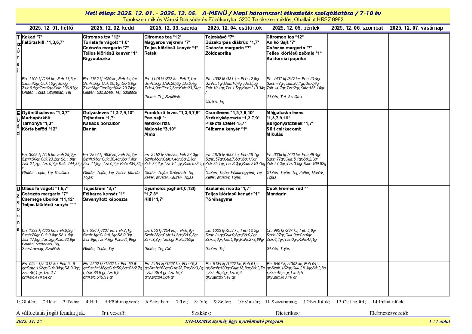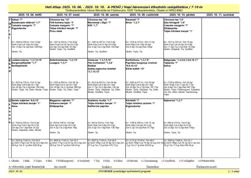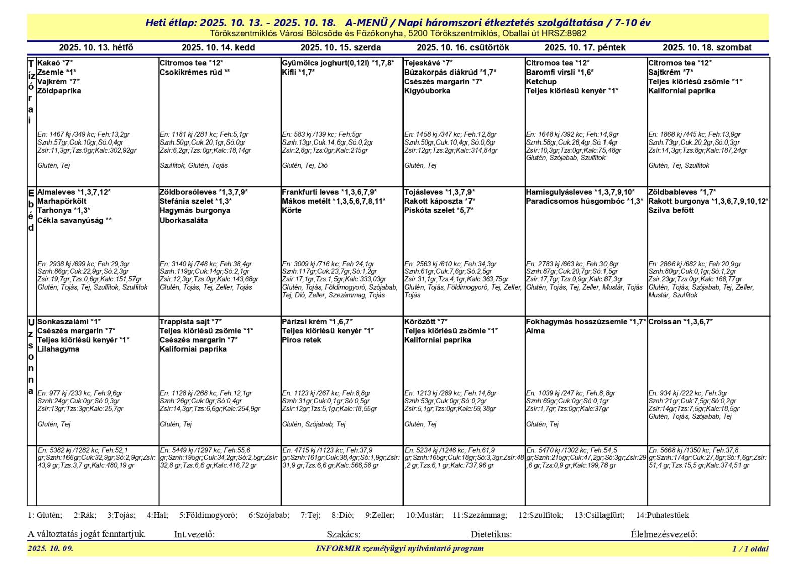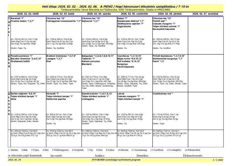 Ezúton tájékoztatjuk Önöket a 2025/2026. tanév iskolai étkeztetés rendjéről.