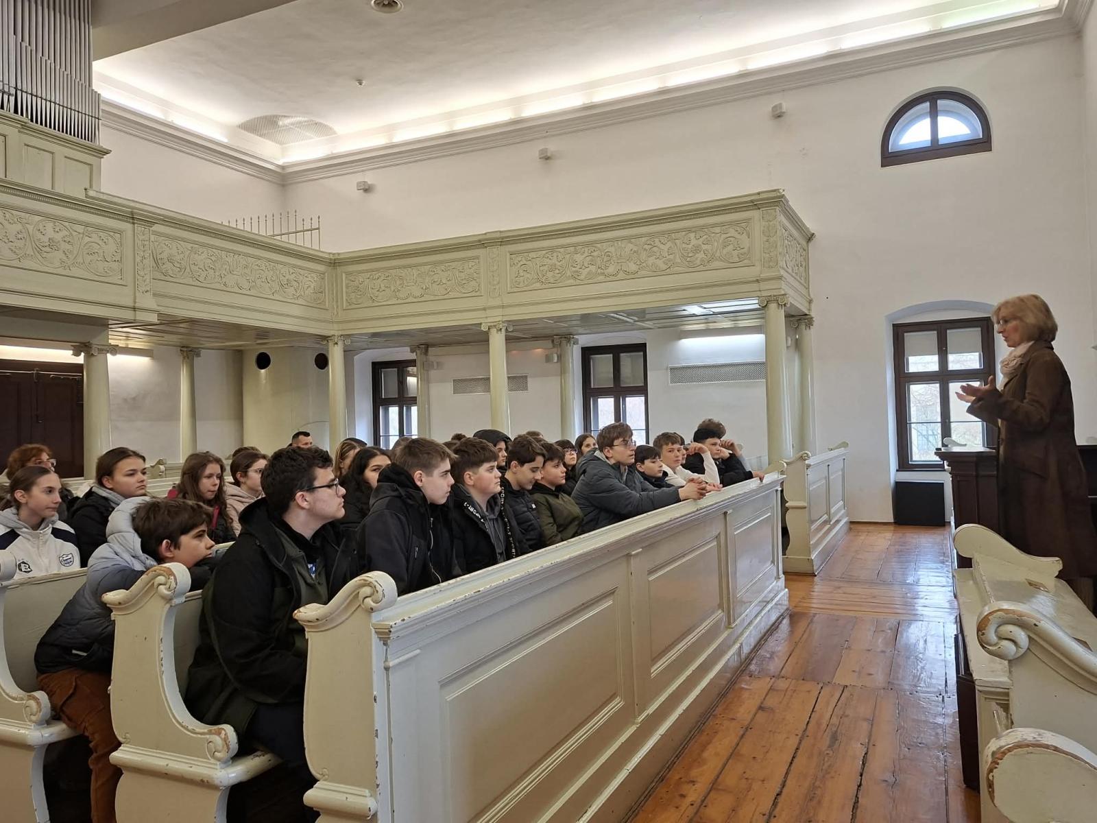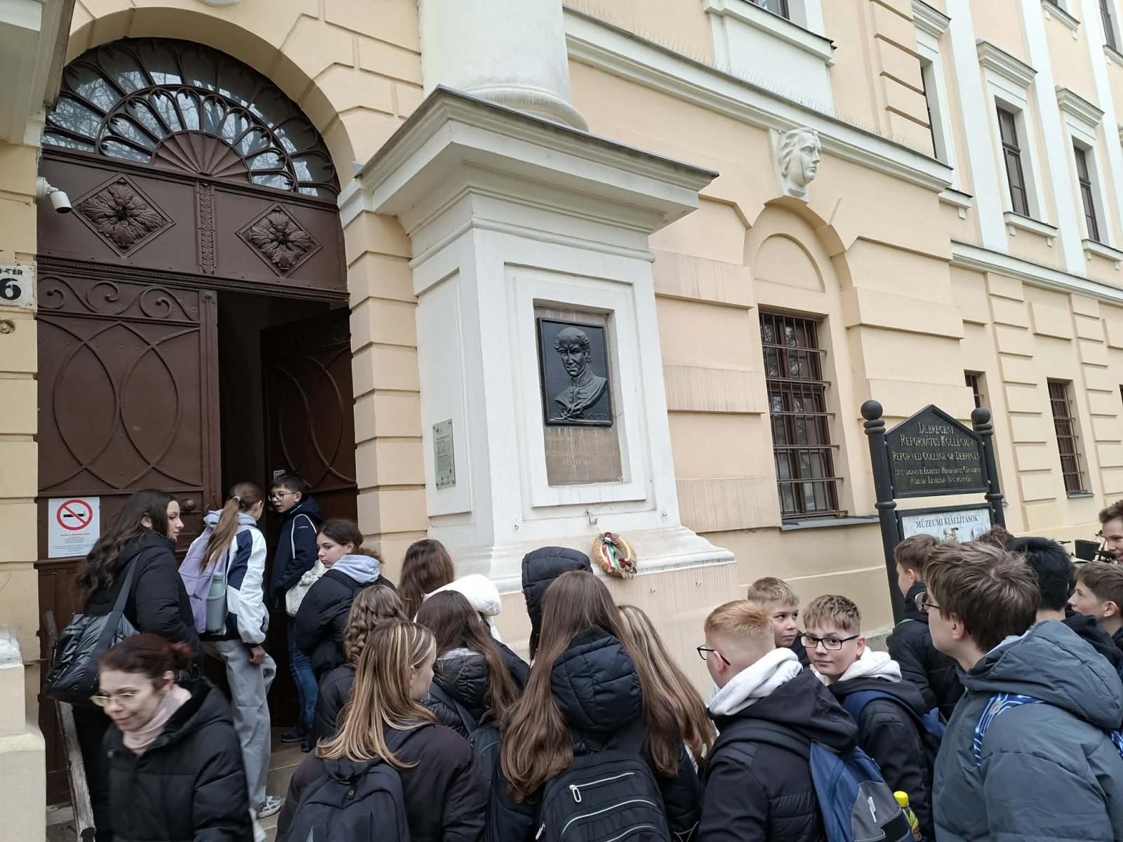 A nap következő állomása a Debreceni Református Kollégium volt, amely évszázadok óta a magyar művelődés egyik központja. A hetedikesek bepillantást nyertek a patinás falak közé, ahol olyan neves személyiségek tanultak, mint Csokonai Vitéz Mihály vagy Móricz Zsigmond. A diákok számára külön élmény volt látni azokat a tereket, ahol a magyar irodalom és történelem nagyjai készültek pályájukra. A kollégium könyvtára szintén nagy hatást gyakorolt a látogatókra. A régi könyvek, kéziratok és a különleges gyűjtemények mind hozzájárultak ahhoz, hogy a tanulók még közelebb kerüljenek a magyar kulturális örökséghez.