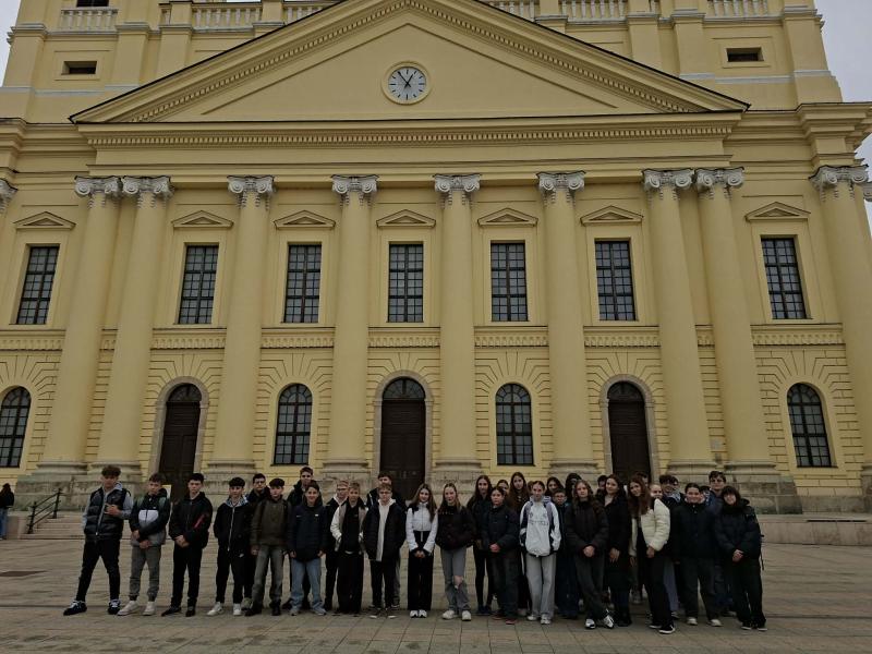 A hetedik évfolyam tanulói izgalmas és tartalmas kiránduláson vettek részt Debrecenben, ahol a város történelmi és kulturális örökségével ismerkedtek meg. A program első állomása a híres Református Nagytemplom volt, amely nemcsak Debrecen jelképe, hanem a magyar történelem egyik kiemelt helyszíne is. A diákok különösen nagy érdeklődéssel hallgatták a templom szerepéről szóló történeteket, hiszen itt mondták ki 1849-ben a Habsburg-ház trónfosztását, ami a szabadságharc egyik sorsfordító pillanata volt. A látogatás során a gyerekek korhű ruhákat is felpróbálhattak, így valódi időutazásban volt részük. A jelmezek segítségével könnyebben elképzelték, milyen lehetett a 19. században élni, és milyen hangulat uralkodhatott a szabadságharc idején.