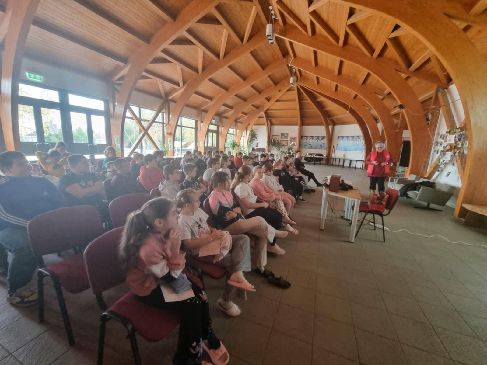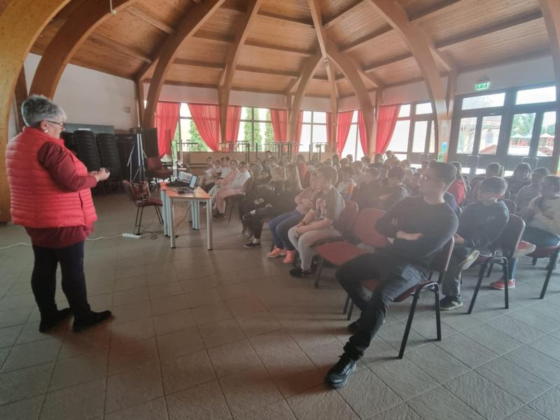 Az 5. évfolyamosok Gulácsiné Molnár Etelka a Magyar Vöröskereszt területi munkatársa segítségével megismerték a Nemzetközi Vöröskereszt megalakulásának történetét, betekintést nyertek abba a sokrétű munkába, amelyet hazánkban és világszerte végeznek.