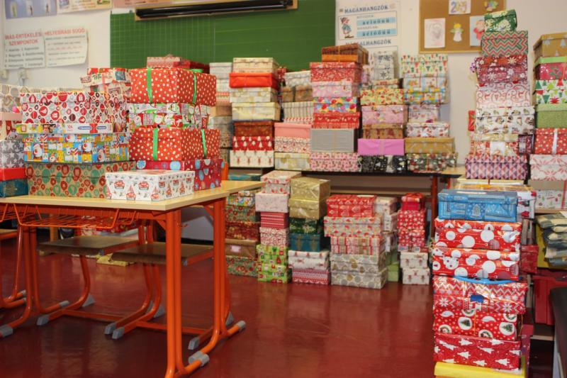 Idén már 22. alkalommal hirdette meg a Baptista Szeretetszolgálat a Cipősdoboz gyűjtőakciót, amelyben iskolánk évek óta nagy szeretettel vesz részt. A november 3 - december 8-ig tartó időszakban sikerült 239 darab igényesen összeállított, szép cipősdoboz ajándékot készíteni, mellyel ugyanennyi gyermeknek szereztünk örömet karácsonyra. Tanítványaink lelkesedésének köszönhetően a szülők és a pedagógusok segítségével, életkor és nem szerint válogatott játékot, iskolai és higiéniai eszközöket, ékszereket, mesekönyveket, édességeket kaptak szép karácsonyi csomagolásban a rászoruló gyerekek. A gyűjtésben minden osztályunk részt vett. Nagyon hálásak vagyunk a kedves szülőknek, köszönjük folyamatos támogatásukat!