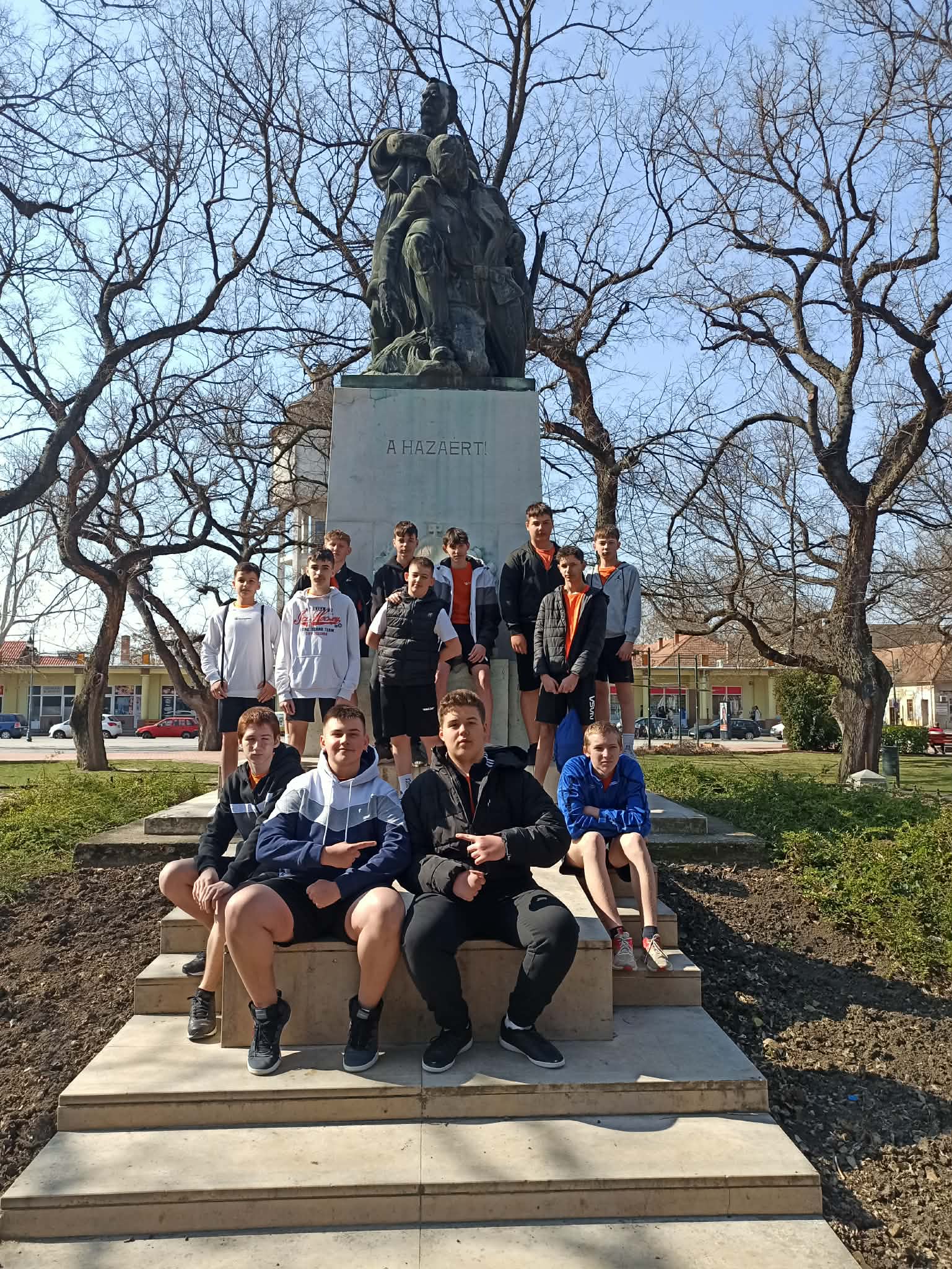 A március 11-én a Székács március 15-ei futásra 14 8.a osztályos tanuló ment el. Ők képviselték az iskolát. 10-kor kezdődött rövid megnyitóval, utána bemelegítettek a gyerekek. A Székács tornatermétől a parkig futott a közel 500 általános és középiskolás tanuló. Teával várták őket. Meghallgattunk egy március 15-ei műsort, majd a koszorúzás következett.