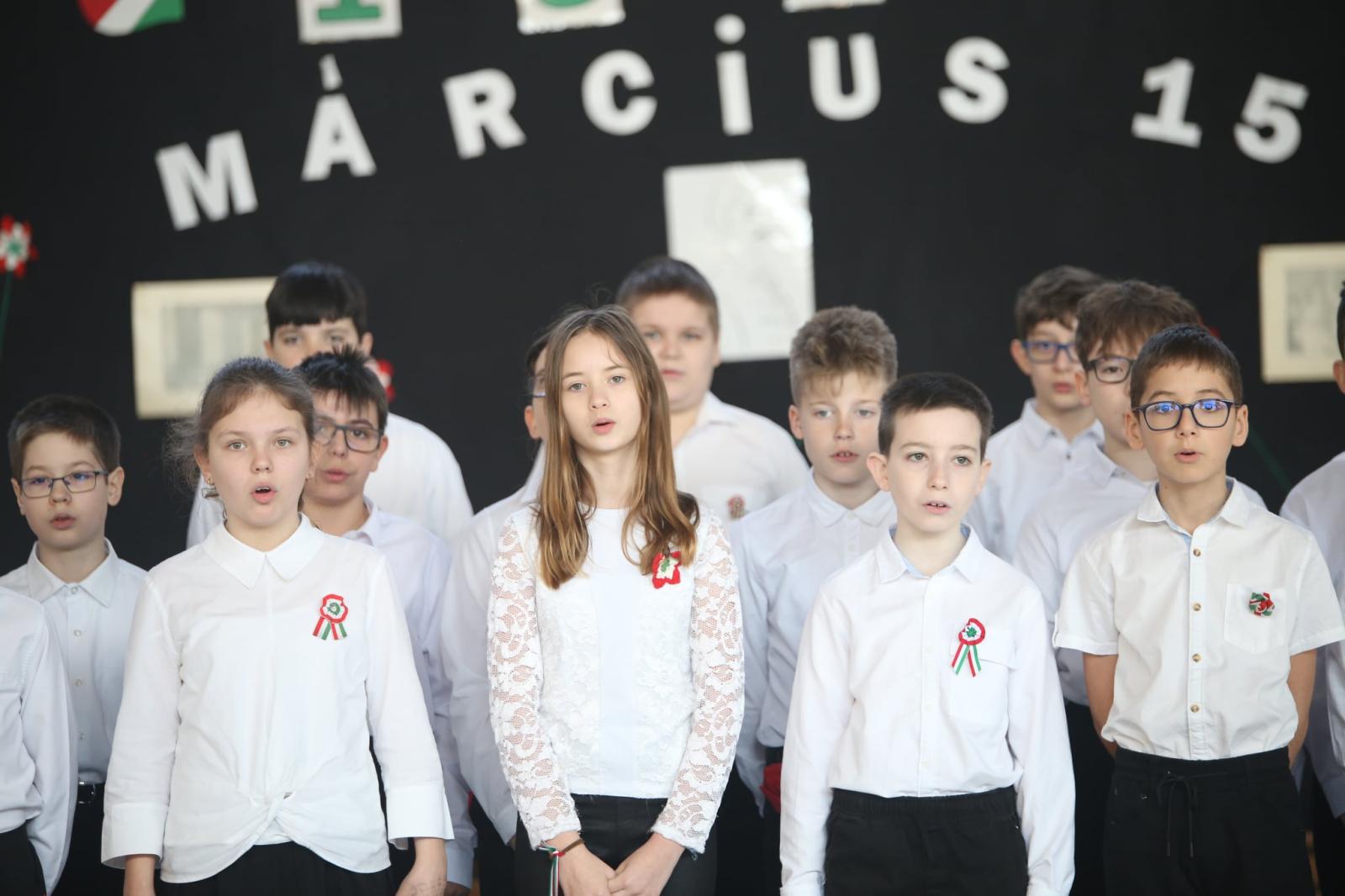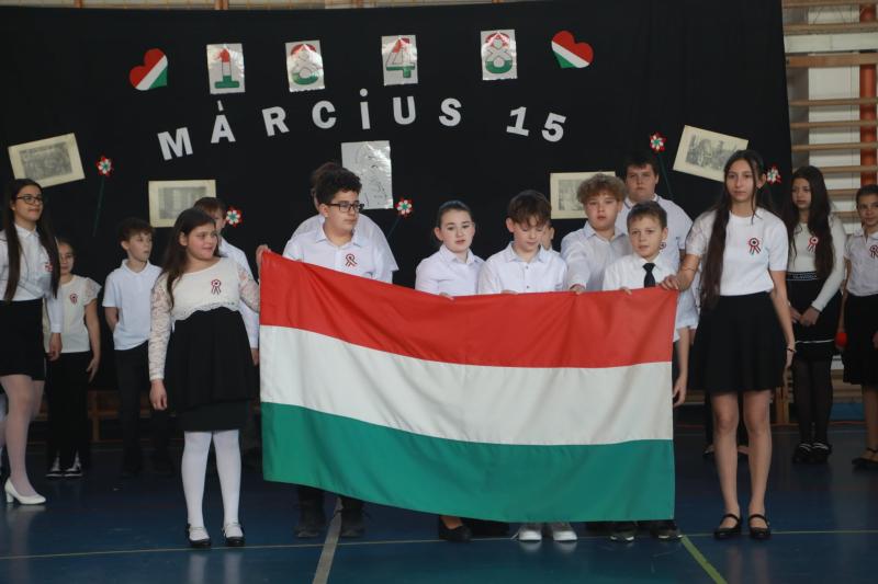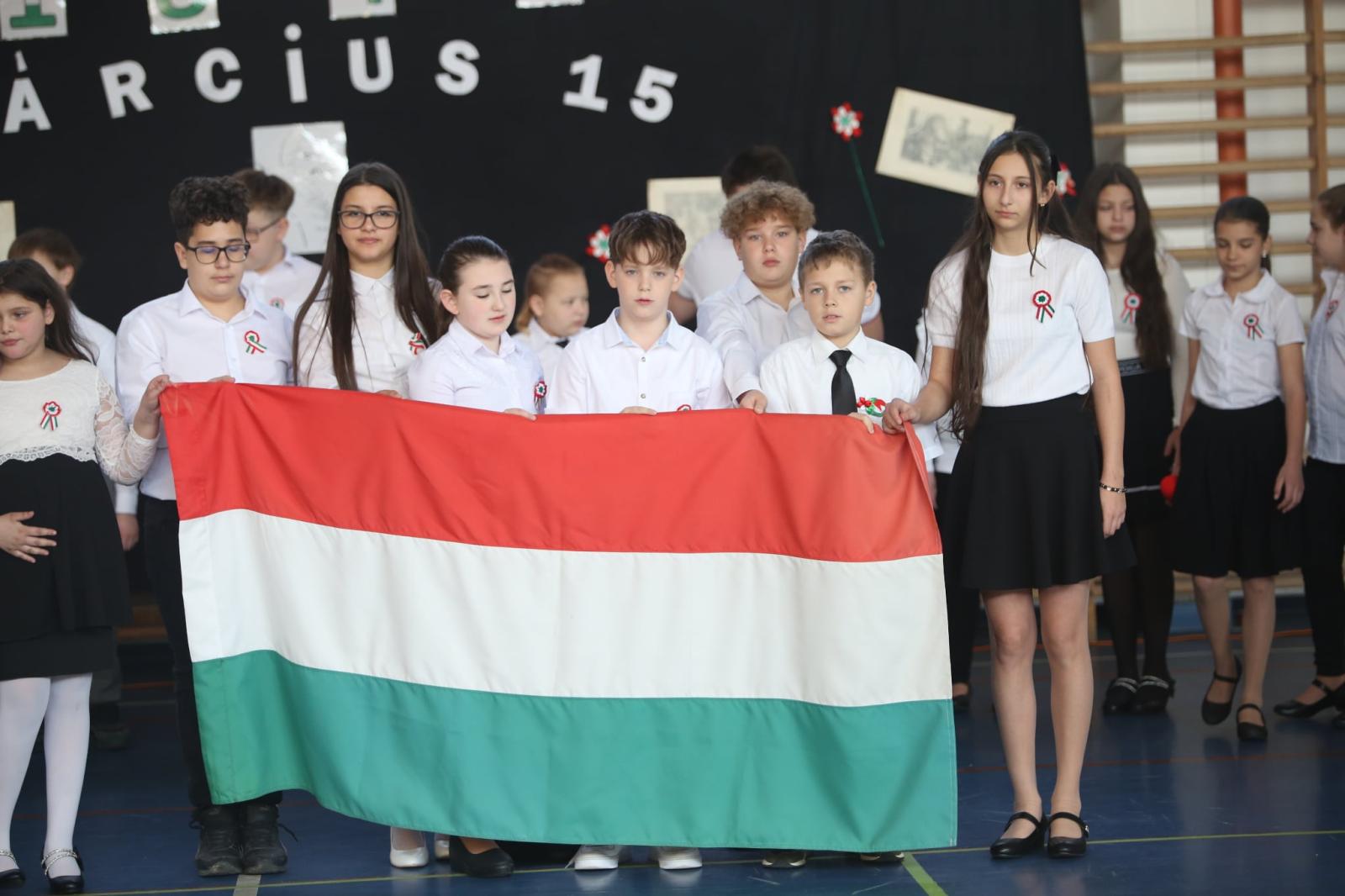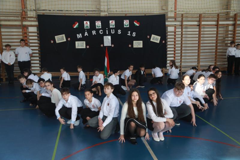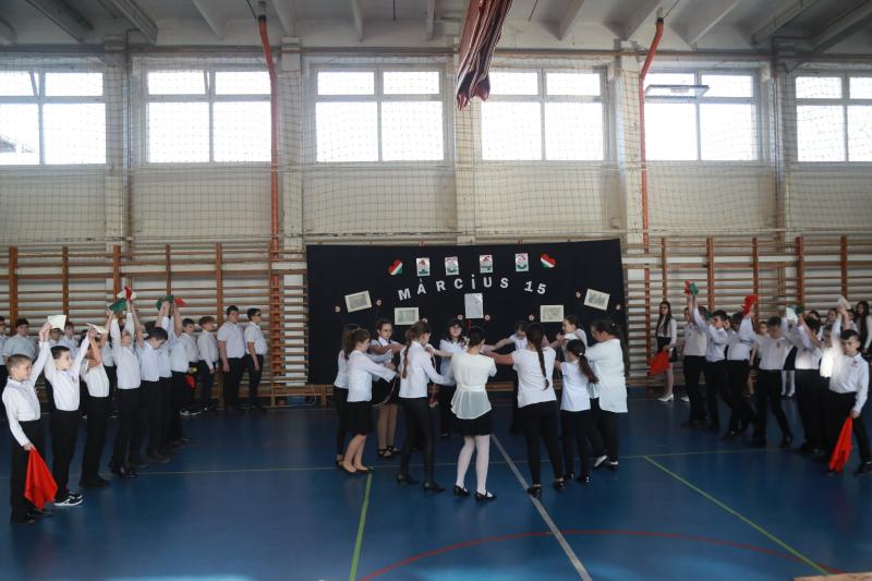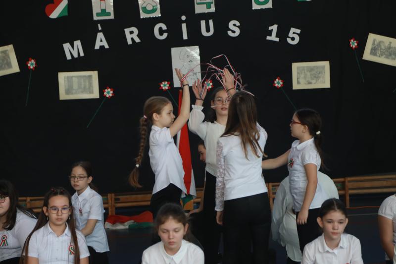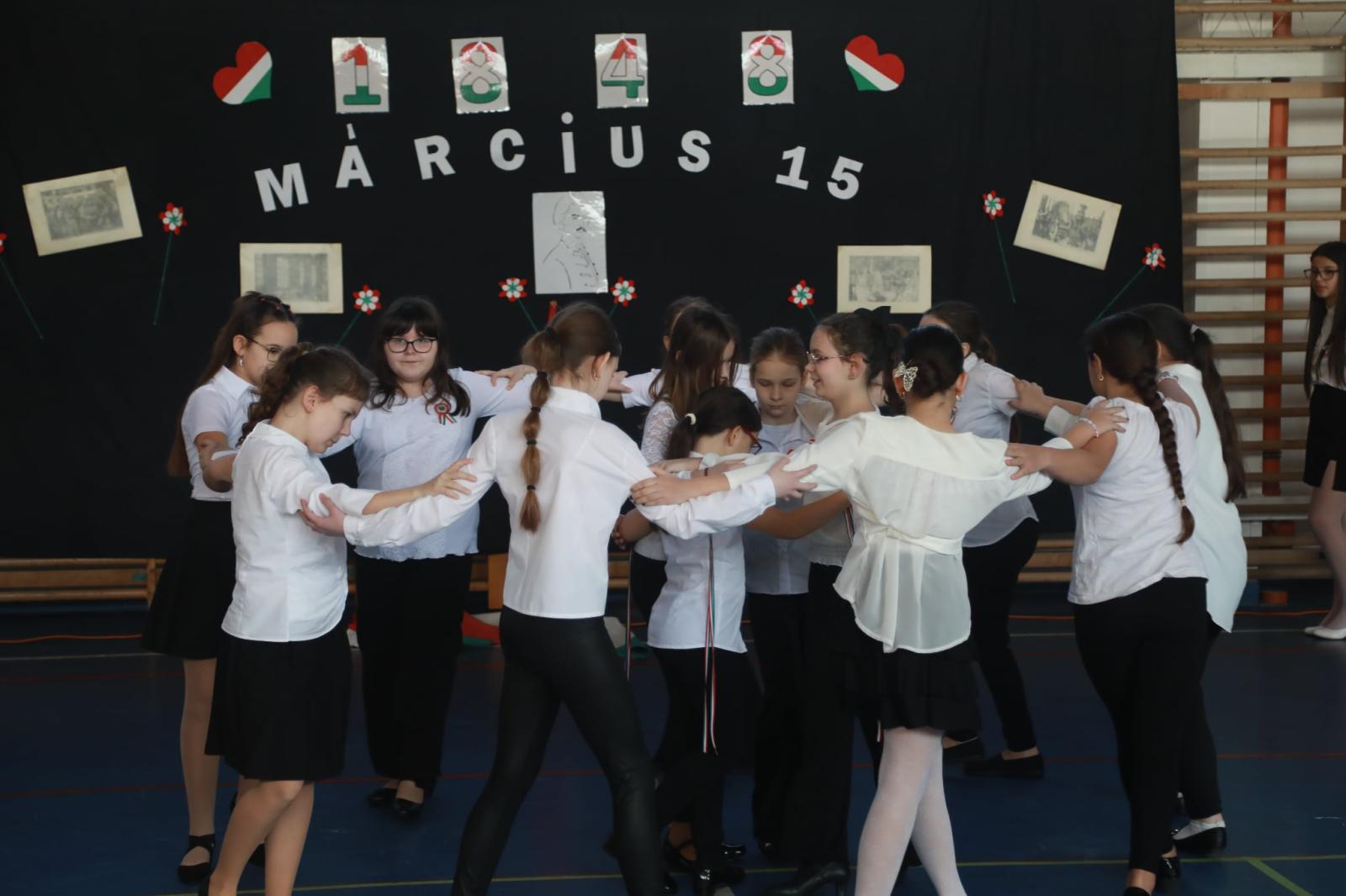Március 15- én arra emlékezünk, amikor a pesti ifjak kiálltak a szabadságunkért, a nemzeti függetlenségünkért és a polgári átalakulás eszméiért. Ezen a napon született meg a 12 pont, elhangzott a Nemzeti dal. Ezzel a hazafisággal a márciusi ifjak örökre beírták magukat történelmünkbe. Az idei iskolai megemlékezés különösen szép és összefogó esemény volt. Az 5.a és az 5.b osztály közösen adta elő a műsort, amelyben a gyerekek nagy lelkesedéssel vállalták a szereplést.