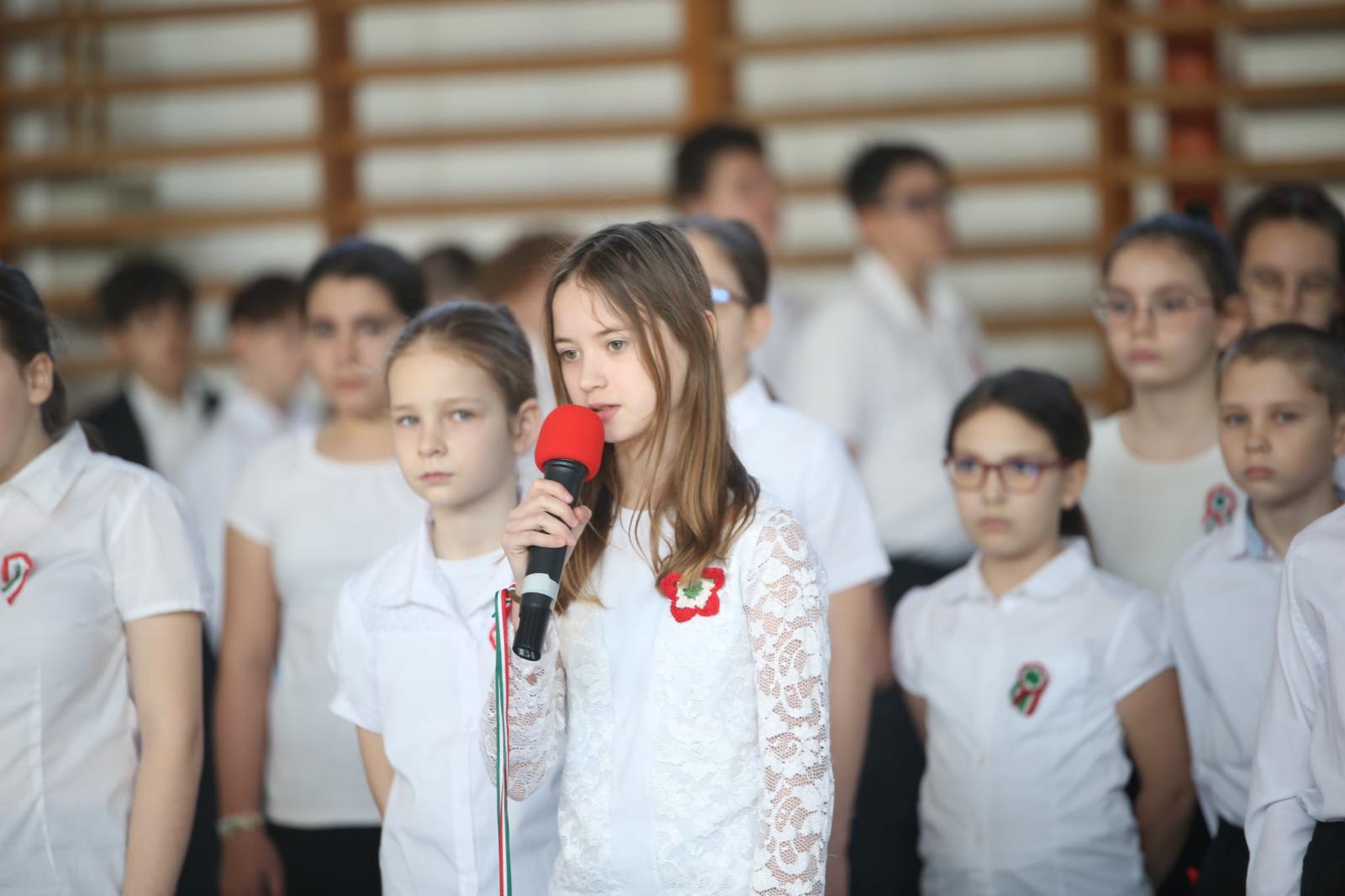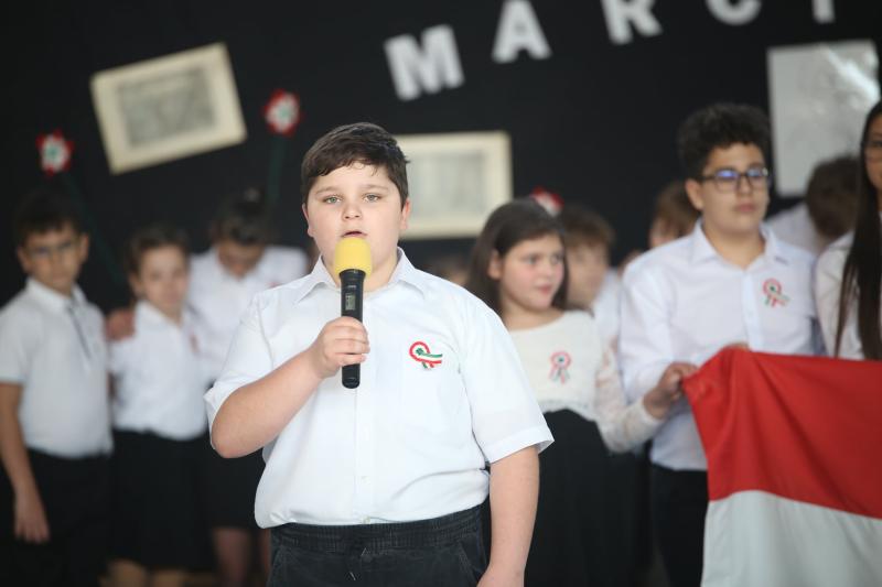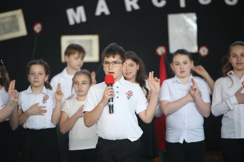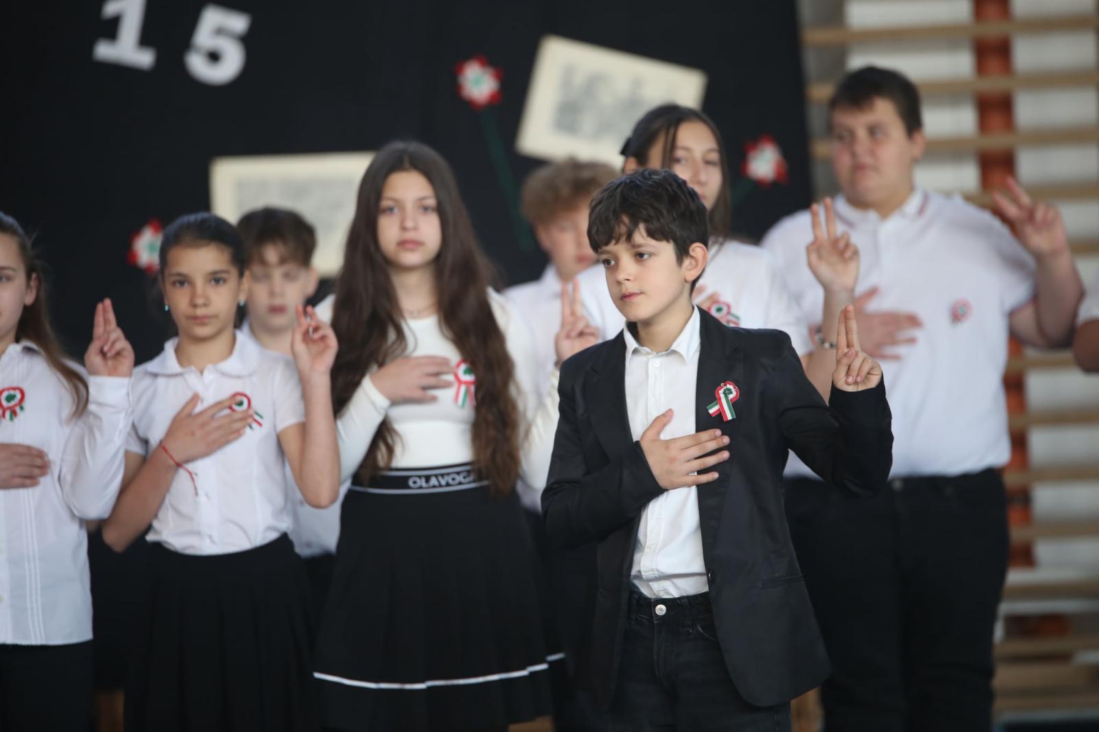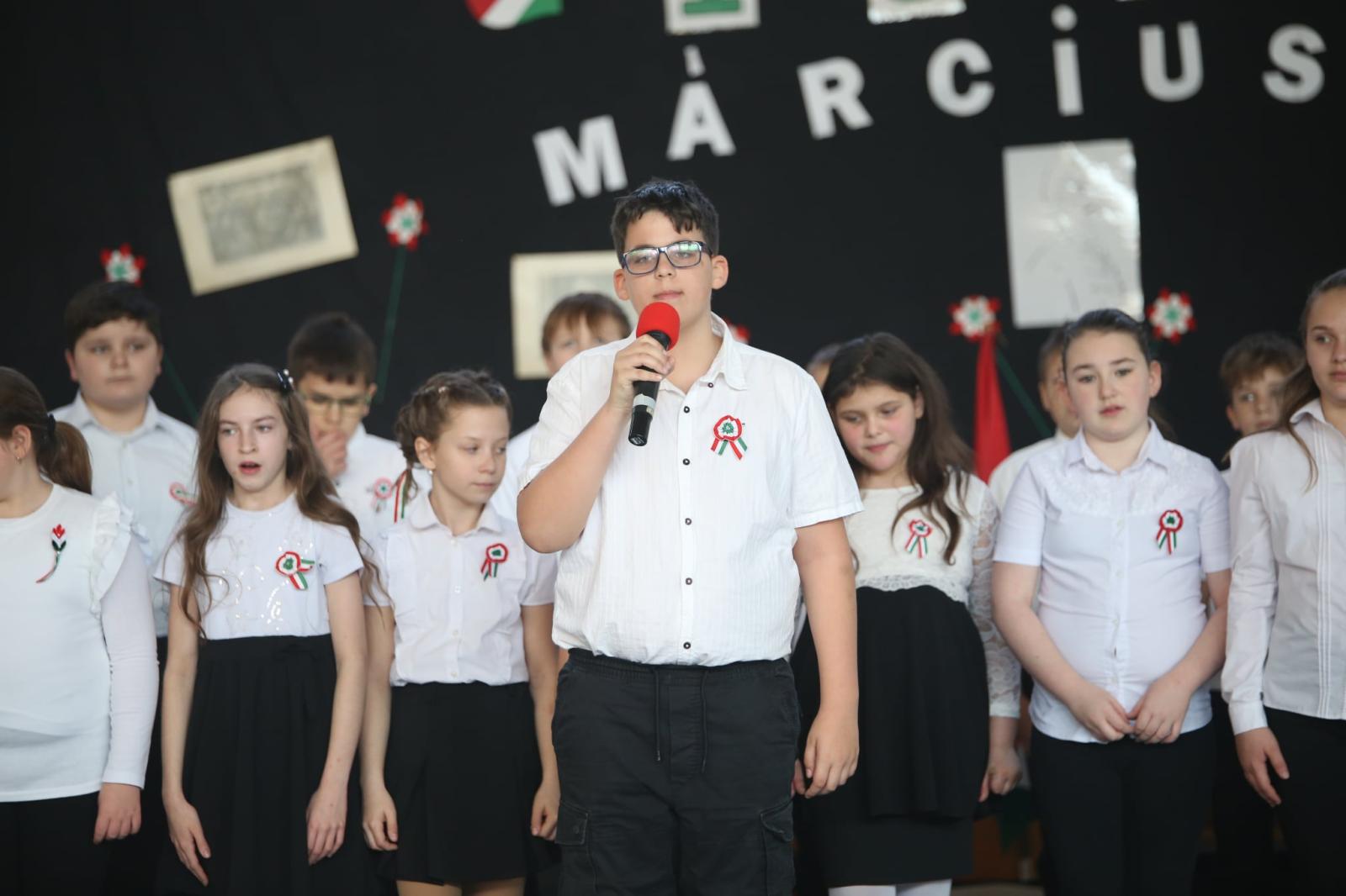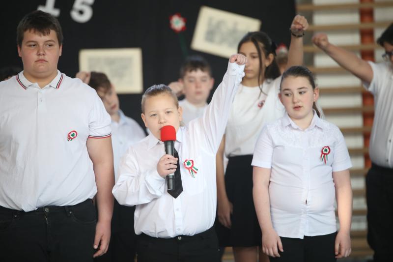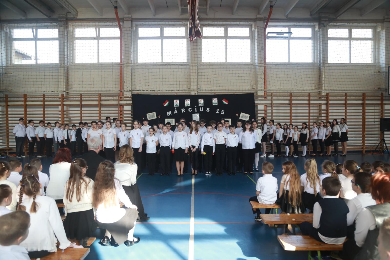 Március 15- én arra emlékezünk, amikor a pesti ifjak kiálltak a szabadságunkért, a nemzeti függetlenségünkért és a polgári átalakulás eszméiért. Ezen a napon született meg a 12 pont, elhangzott a Nemzeti dal. Ezzel a hazafisággal a márciusi ifjak örökre beírták magukat történelmünkbe. Az idei iskolai megemlékezés különösen szép és összefogó esemény volt. Az 5.a és az 5.b osztály közösen adta elő a műsort, amelyben a gyerekek nagy lelkesedéssel vállalták a szereplést.