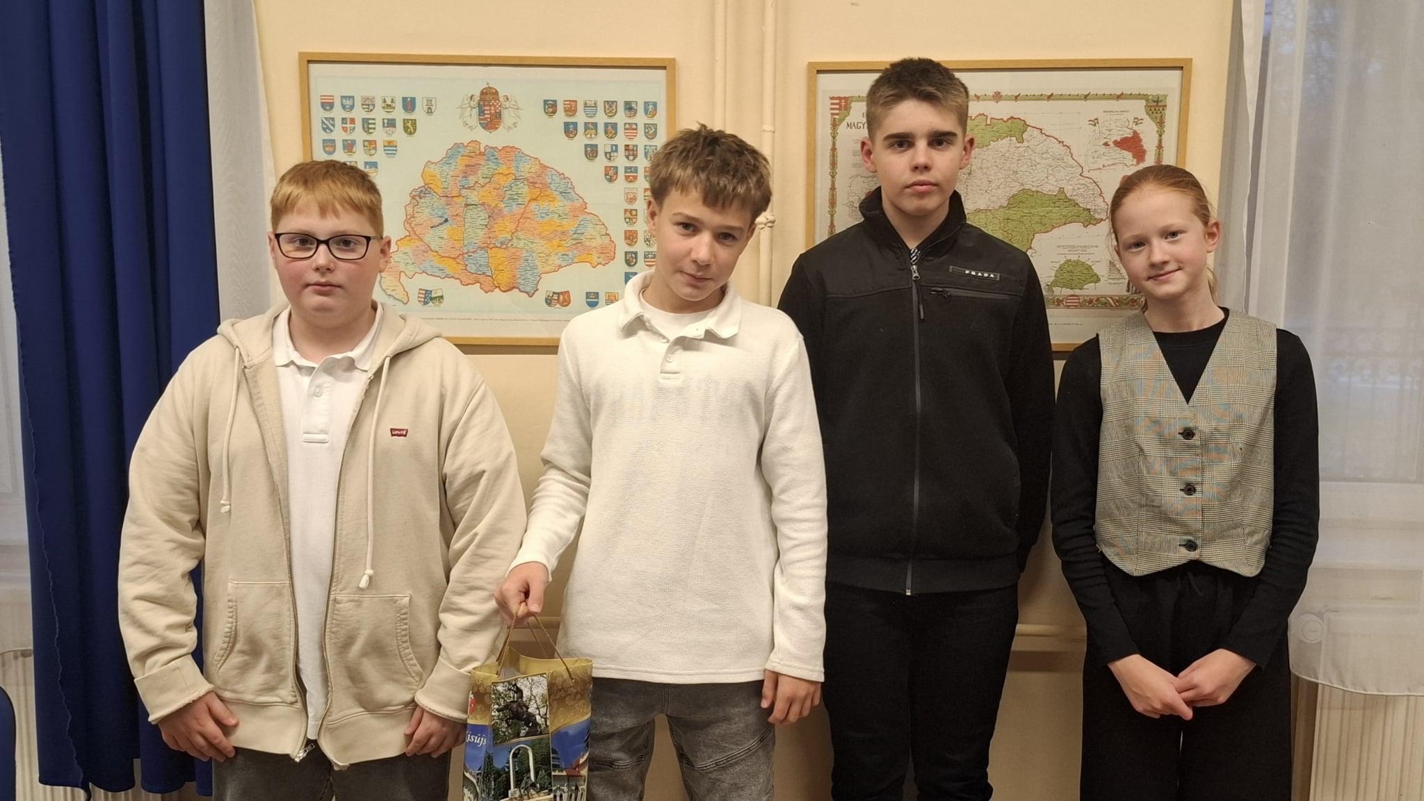 Fekete István születésének 125. és halálának 55. évfordulója tiszteletére a kisújszállási Móricz Zsigmond Református Kollégium, Gimnázium, Technikum, Általános Iskola és Óvoda kétfordulós vetélkedőt rendezett. A résztvevőknek nemcsak az író életútját, hanem műveit is alaposan ismerniük kellett. Az írásbeli fordulóból iskolánk 7.a osztályos tanulói – Elek Edvin, Kazinczy Péter, Pató Bence és Somodi Dóra Hanna – jutottak tovább a szóbeli döntőbe. A csapat végül a II. helyet szerezte meg, mindössze egyetlen ponttal lemaradva az első helyezettől. Gratulálunk a csapatnak!