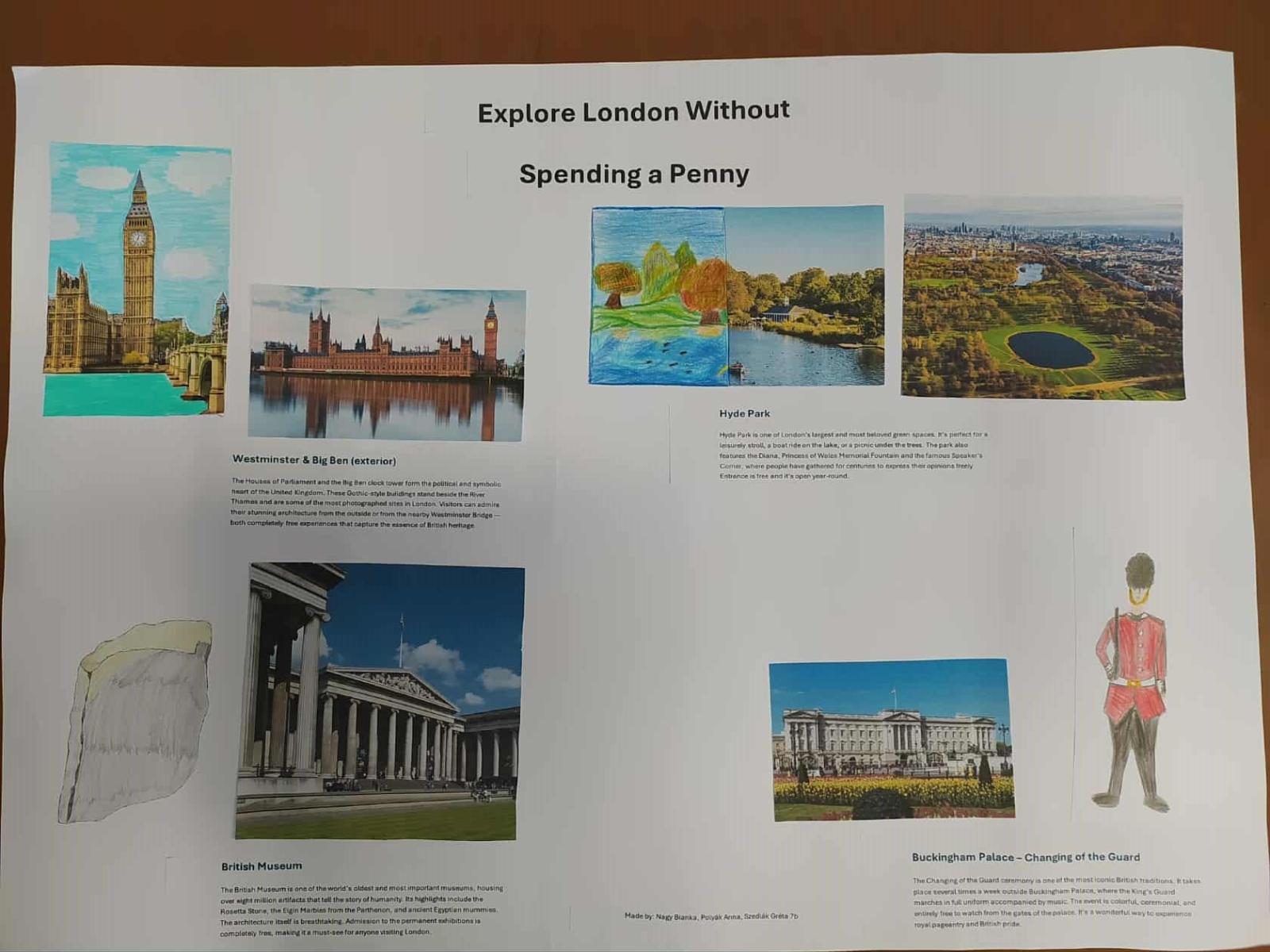 · Országos 2. helyezést ért el a Nagy Bianka, Szedlák Gréta és Polyák Anna összetételű 7.b osztályos csapat, akik London ingyenesen látogatható nevezetességeit dolgozták fel plakátjukon.