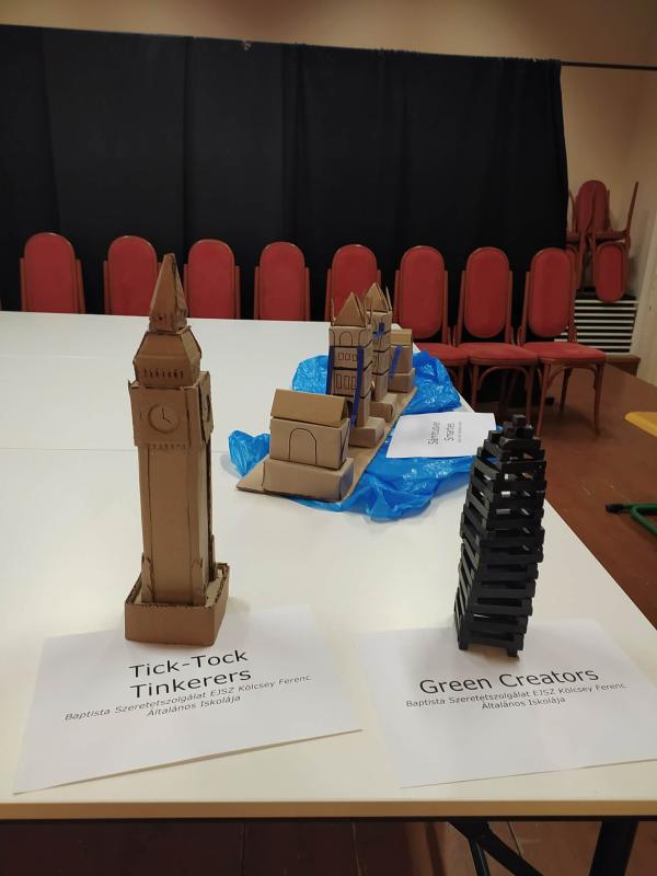 Az első fordulóban a csapatoknak London egy-egy híres látványosságát kellett megalkotniuk kizárólag újrahasznosított anyagok felhasználásával, majd az elkészült maketteket egy angol nyelvű PowerPoint-prezentációban bemutatniuk. Három csapatunk három ikonikus londoni épületet választott: Big Ben , London Eye, The Gherkin