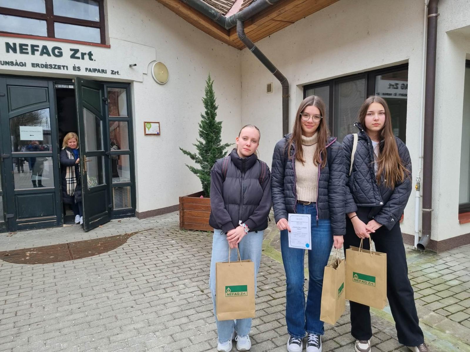 A csapat tagjai: Ollé Georgina, Szarka Luca, Szöllősi Blanka 8. b osztályos tanulók voltak.