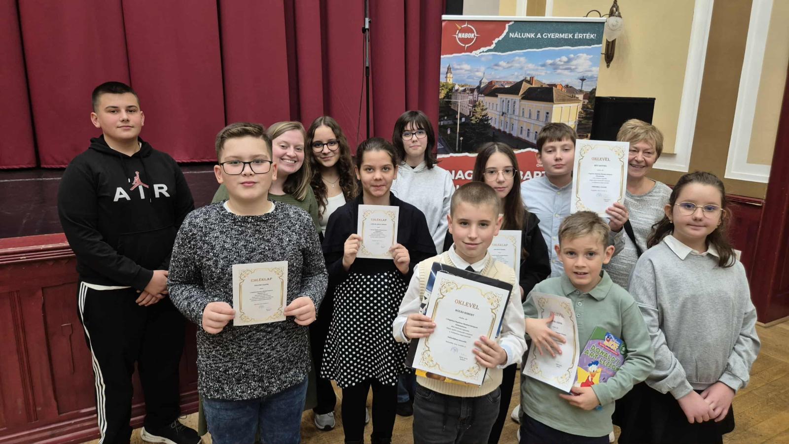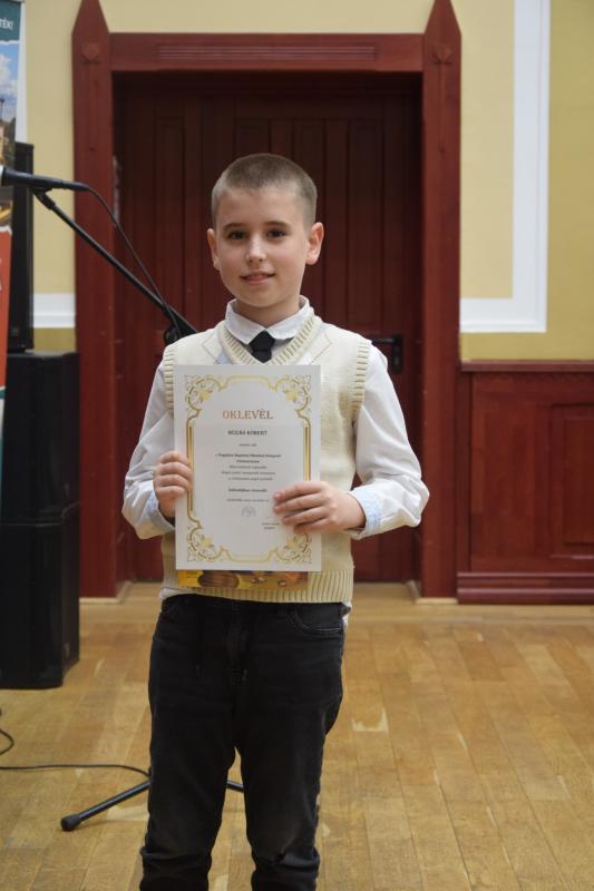 2025.november 12-én Kisújszálláson rendezték meg a regionális angol versmondó versenyt, amelynek a Nagykun Baptista Oktatási Központ Gimnáziuma adott otthont. A megmérettetésen 148 versenyző vett részt négy korcsoportban. Iskolánkat 10 lelkes tanuló képviselte, akik szépen helytálltak a versenyen. Különdíjban részesült Antal Zádor (2.b), Búzás Róbert (4.b) és Révi Botond (6.b), míg Ruder Alexa (8.b) a 3. helyezést szerezte meg. Gratulálunk minden résztvevőnek és köszönjük a felkészítő tanárok munkáját!