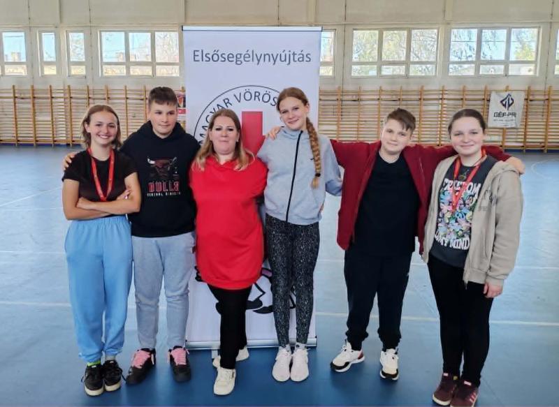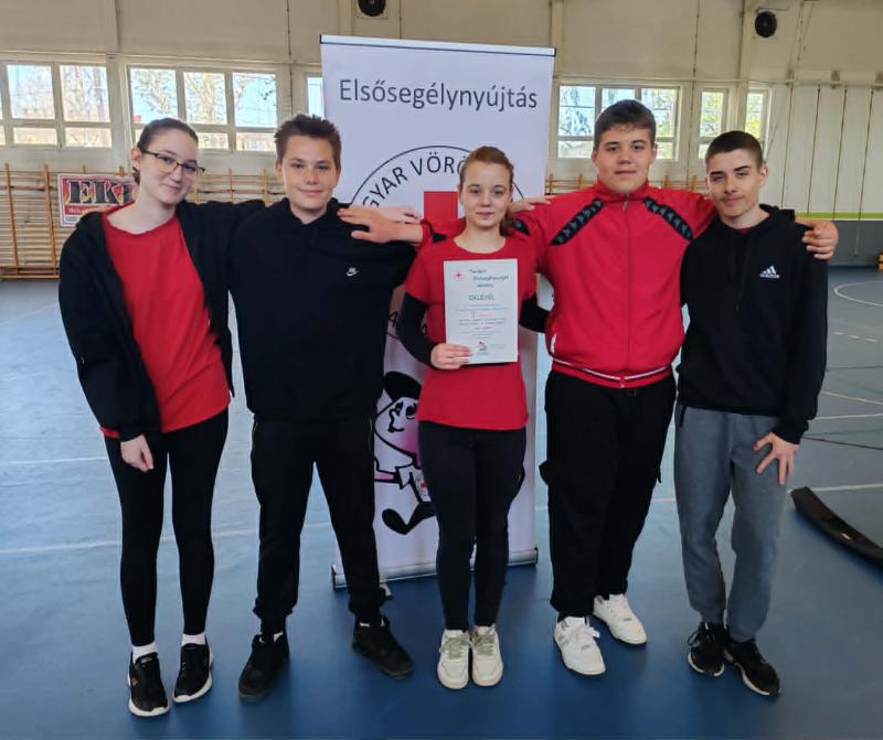 Ezúton is köszönjük azon tanulóink munkáját, akik sérültként vagy segítőként járultak hozzá a verseny sikeres lebonyolításához. A sérültek szerepében Bana Boglárka, Bene Zalán Dávid, Károlyfi Dorka, Skrám Aida (7.c. osztály), Karakas Dominika (7.b. osztály), Ruder Alexa, Ollé Georgina (8.b. osztály), valamint Dékány Mihály (4.a. osztály) működtek közre. Segítőként Molnár Luca (7.b. osztály), Nádas Dóra (7.c. osztály) és Bana Bianka (8.b. osztály) támogatták a szervezést.