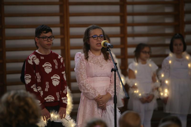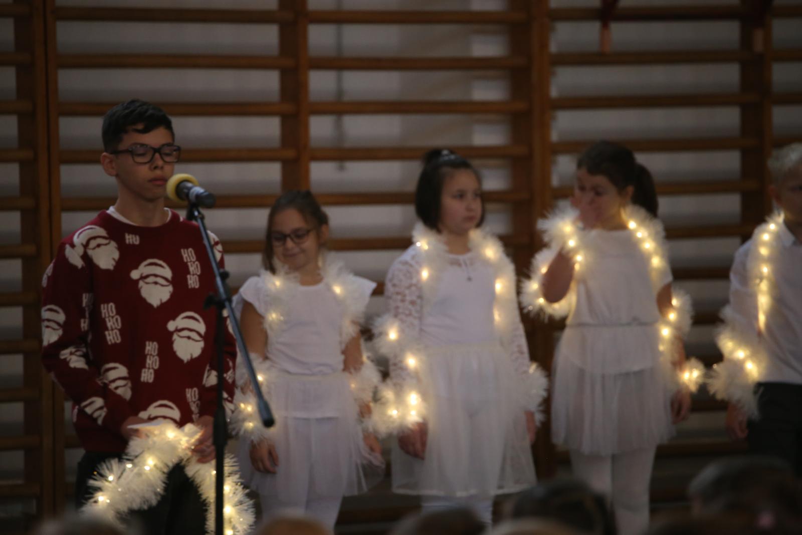 Az ünnepi műsor tovább gazdagította a megnyitót: iskolánk színjátszó szakköre és énekkara közös előadással készült, amelyben a karácsony üzenete művészi formában is megelevenedett. A felkészítő tanárok – Fejszésné Hegedűs Brigitta, Varga Mária és Szelei Zsuzsa tanító nénik – áldozatos munkájának köszönhetően a produkció méltó része volt az adventi készülődésnek.