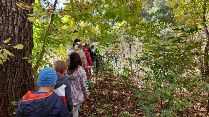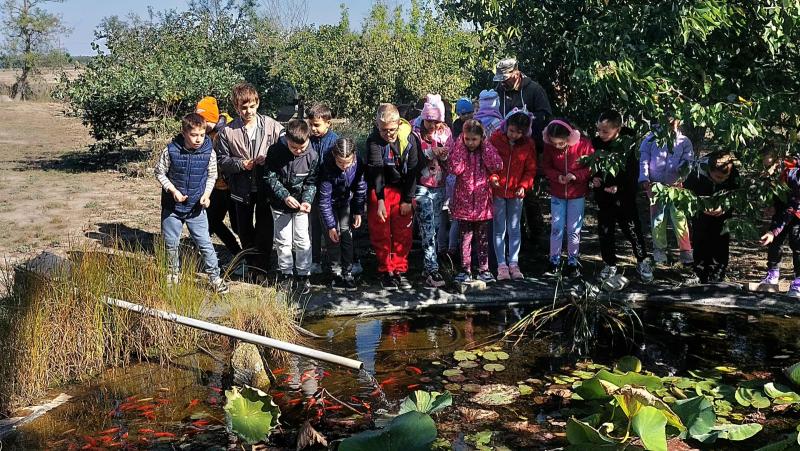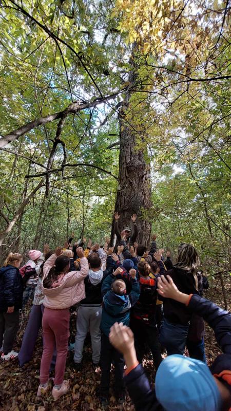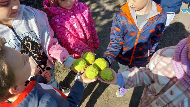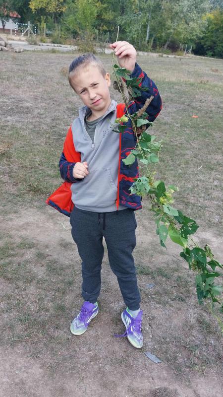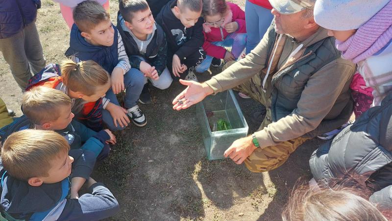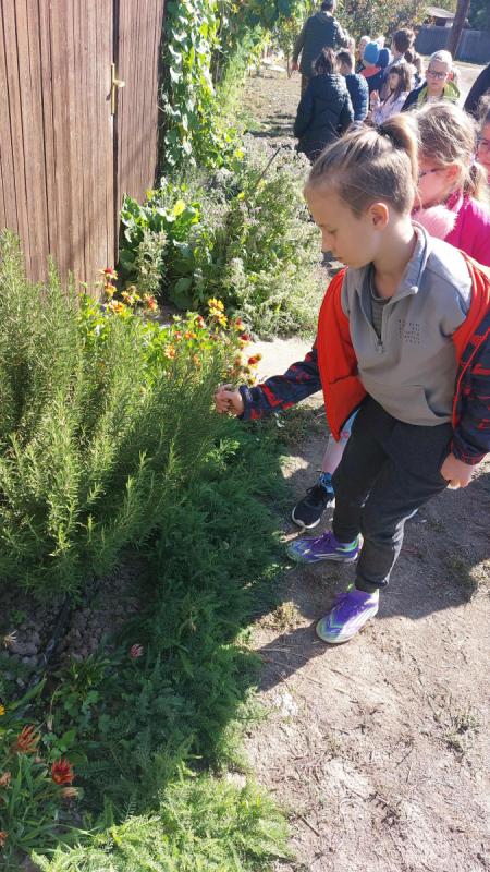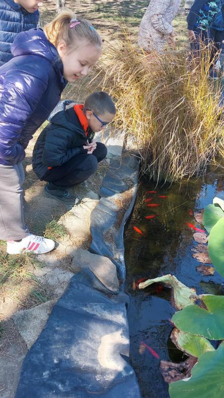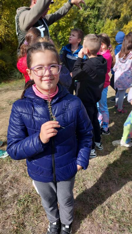 Elsőként aranyhalakat etethettünk és pár napos mocsári teknősökben gyönyörködhettünk. Hátizsákjainkat magunk után hagyva kezdetét vette a gyalogtúra, ahol a terület jellegzetes növény- és állatvilágával ismerkedhettünk meg. A legszerencsésebbek testközelből is szemügyre vehettek néhány apró élőlényt – sisakos sáskát, szarvasbogarat, imádkozó sáskát, katicabogarat, pillangókat -, amelyeket sétánk közben fedeztünk fel. Az állatok mellett megcsodálhattuk az ártéri rét színpompás növényvilágát is. A fák hajladozását utánozva, egy hatalmas nyárfa derekát átölelve mi is a természet részeseivé váltunk. A narancseper (népies nevén: vadnarancs) termésével rögtönzött petanque játékot játszottunk. Nadrágjaink szárát sűrűn díszítette útszéli bogáncs. A szeles időnek köszönhetően ördögszekérrel is versenyt futhattunk. A szemléletes és humoros túravezetés feledtette velünk a megtett kilométerek számát és a lassan ránk telepedő fáradtságot. A hosszú sétát követően mindenki elfogyaszthatta az ebédjét, majd hazaindulás előtt görög teknősök etetésével és sárkányeregetéssel búcsúztattuk az élményekben gazdag, jó hangulatú kirándulást.