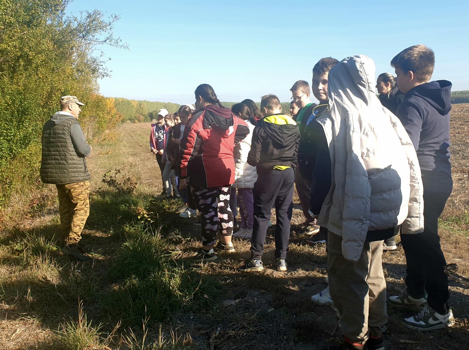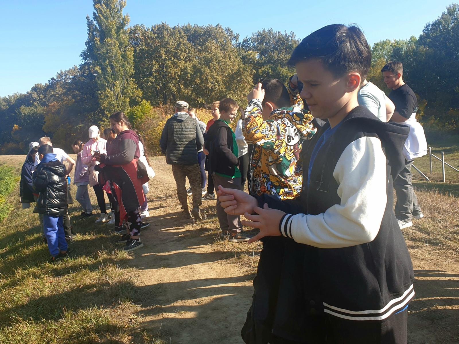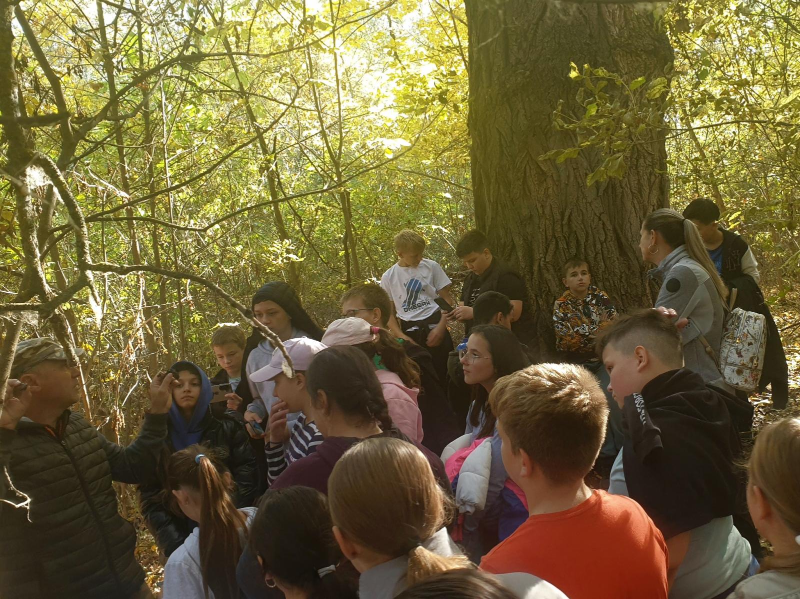 Az őszi erdő rengeteg érdekességet kínált. Megkóstoltuk az ehető őszi terméseket (csipkebogyó, kökény, lepényfa), hallgattuk a madarak énekét, és igyekeztünk meglátni őket a fák ágai között (cinegék, őszapó, fakopáncsok, csuszkák). Több védett fajt láttunk, többek között mocsári teknőst, sisakos sáskát, nagy szarvasbogár maradványait, növények közül az őshonos és védett réti őszirózsát és Magyarország egyik legveszélyeztetettebb növényfaját, a kunsági bükkönyt. Láttunk puhafás ligeterdőt, és keményfás ártéri erdőt. Vizsgáltuk az élőlények közötti kapcsolatokat, például az óriás gyapjat tintagomba és a nyárfa szimbiózisát, a gubacsdarázs élősködő lárváját a tölgylevélen kialakult golyó gubacsban, és a fák versengését a fényért. Házi állatokkal is találkoztunk, lovakkal, szarvasmarhákkal, és a rájuk vigyázó mudikkal. A szántóföldek őszi talajművelési eljárásai is szóba kerültek, amelyet a gyerekek már ritkán tapasztalhatnak meg ilyen közvetlenül. Az invazív óriás ázsiai imádkozó sáska, és az ártéren talált őzcsontváz volt a kedvence a gyerekeknek.