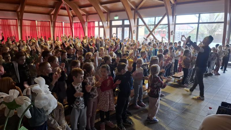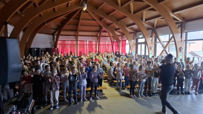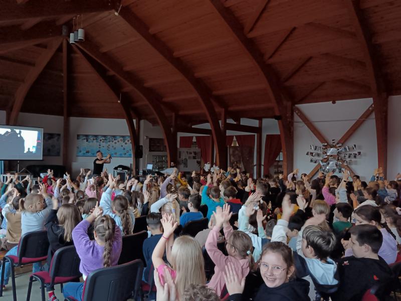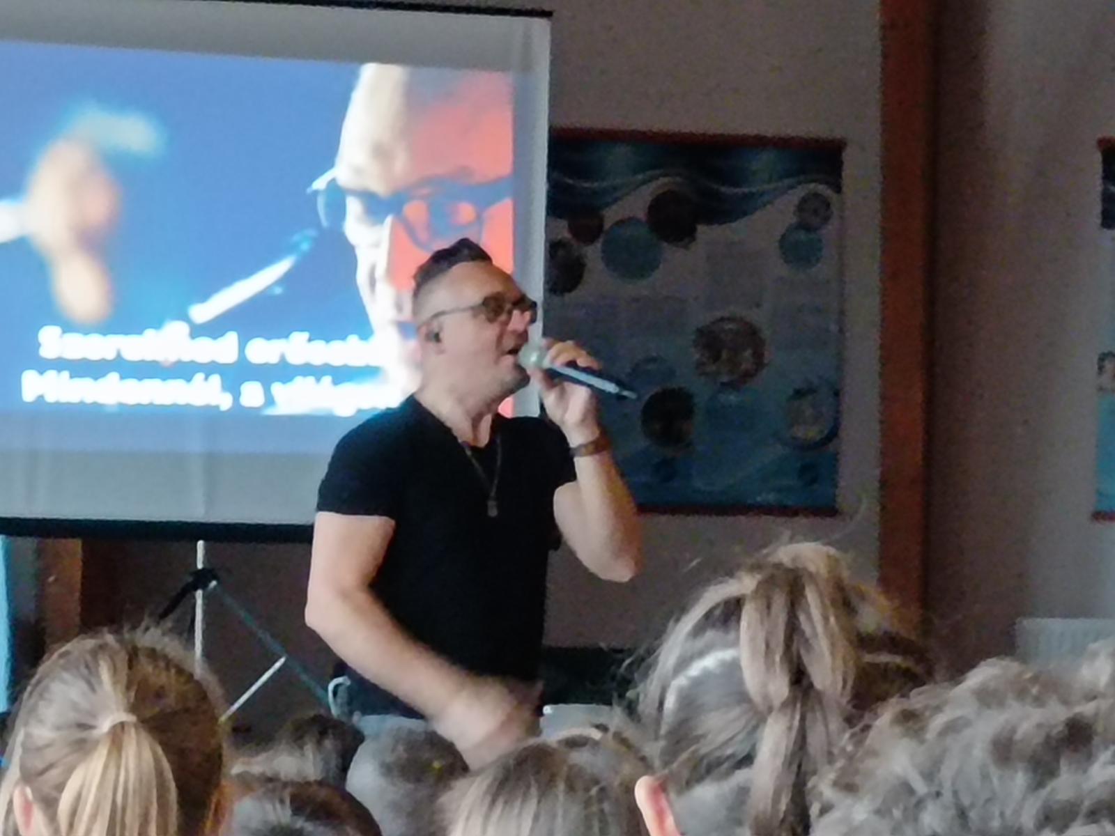 Visszatérő vendégként Szabó Balázs gospelzenész adott először az alsó, majd a felső tagozatnak koncertet. Fő üzenetként igyekezett a hálaadást szívünkre helyezni.